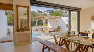 Casa Luuma is located in the sought after North Side neighborhood. This 4 bedroom, 3 bath Villa, has an open kitchen/living concept which opens to the pool patio area. This creates a seamless flow through a quadruple glass slider which allows for a flowing, balanced indoor-outdoor lifestyle. The living area has a large sofa and dining table and there is plenty of seating in the serene outdoor terrace under the palapa next to the pool.